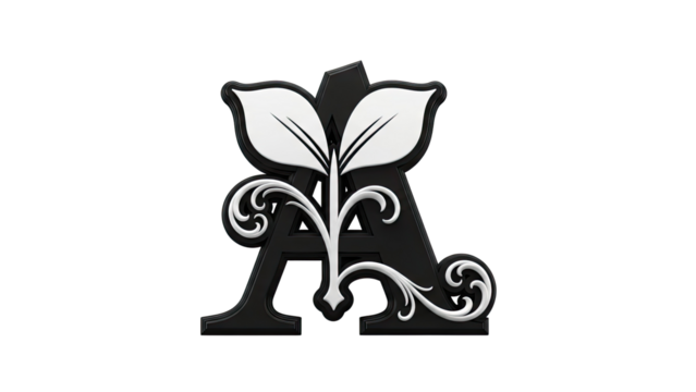Black Letter 'A' with White Floral Embellishments