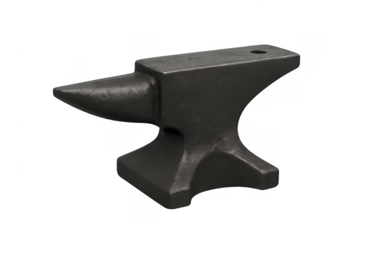 Shiny metal anvil isolated PNG on transparent background, blacksmith tool for forging and shaping metal, heavy duty equipment