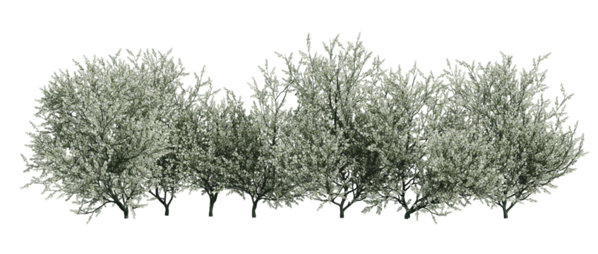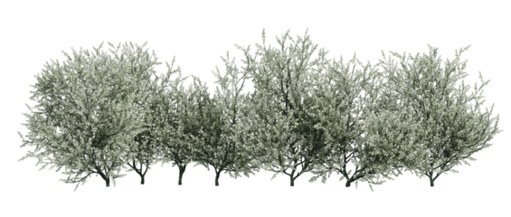 blackthorn bushes isolated on transparant background. 3d rendering