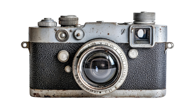 Vintage camera isolated on white, sharp focus and detailed texture