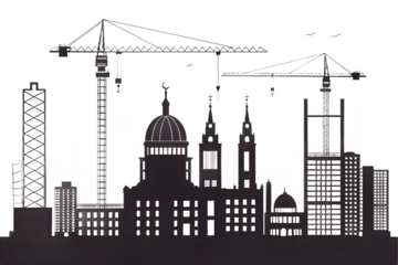 Silhouette Cityscape with Construction Cranes and Historic Buildings