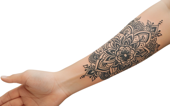 Culturally Rich Mandala Tattoo Pattern Decoratively Inked on the Forearm