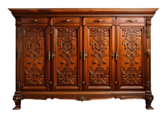 Antique cabinet restoration workshop woodblackwork close-up isolated on a transparent or white background.