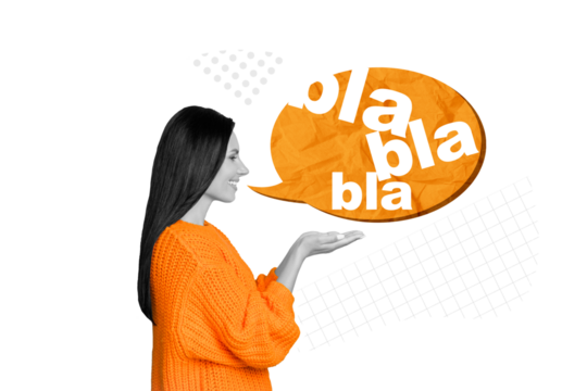 Close up of human ear listening to a continuous stream of BLAH text emanating from an open mouth collage transparent background