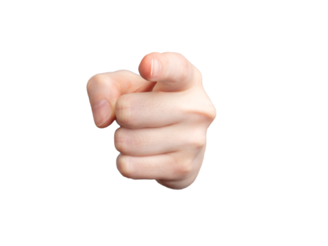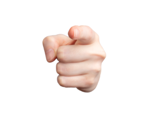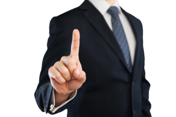 The hand of a man in a suit pointing with a finger isolated on  a transparent background
