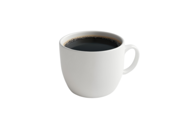 White ceramic cup filled with black coffee. Minimalistic design, isolated on a transparent background. Ideal for beverage, kitchen, and lifestyle themes.