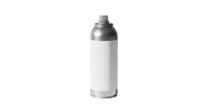 Realistic metallic aerosol spray can mockup featuring a blank white label area perfect for showcasing product branding or custom designs in a versatile isolated presentation against a dark background.
