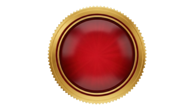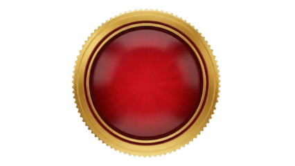 Shiny red seal with golden border isolated PNG, award badge for product guarantee or official certificate, on transparent background