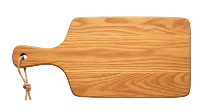 Rustic natural wooden cutting board or serving platter isolated on white background