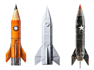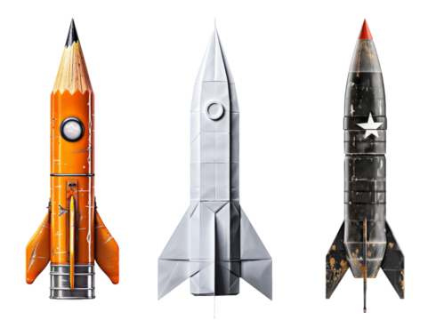 set of  creative design rockets on transparent background