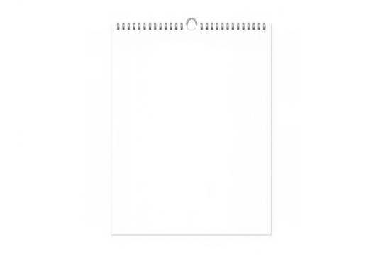 Blank white paper wall calendar mock-up template with spiral binding, isolated on transparent background