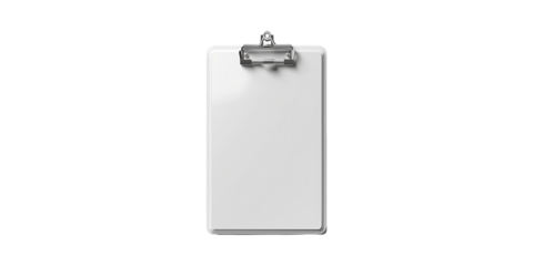 Black clipboard with blank white paper note pad, Isolated On Transparent Background, Png