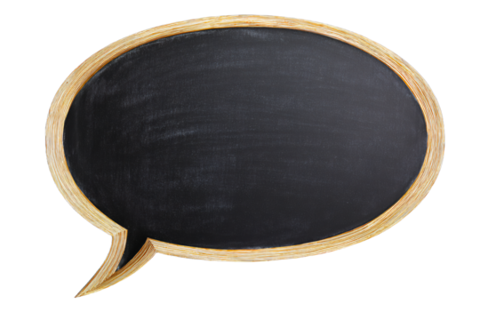 Wooden speech bubble chalkboard empty blank isolated on a transparent background