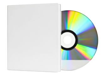 Isolated lilac CD case with CD audio disc media out for music data listening object studio