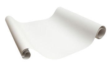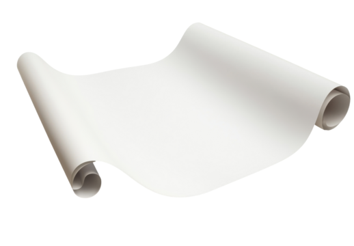 A smooth, rolled sheet of white paper displayed against a white background, ideal for creative or artistic projects. transparent background