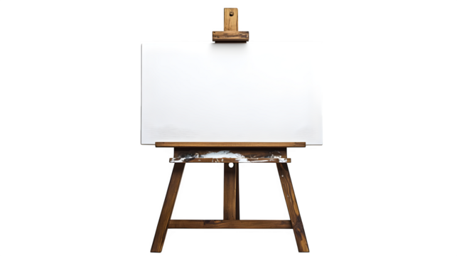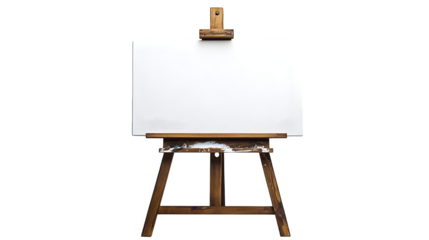 Blank White Canvas on Wooden Easel, Front View, Studio Lighting, Isolated