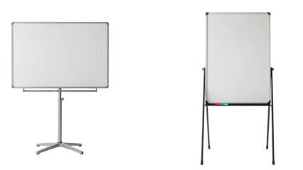 Office Flip Chart Board With Blank Sheet on Stand, Cut Out, Clipping Path, Isolated on a Transparent PNG Background.