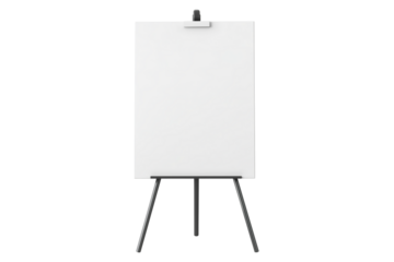 Blank White Flip Chart on Tripod Easel Stand Isolated on Transparent Background. Flip Chart Board on Tripod Easel Mockup Transparent PNG.