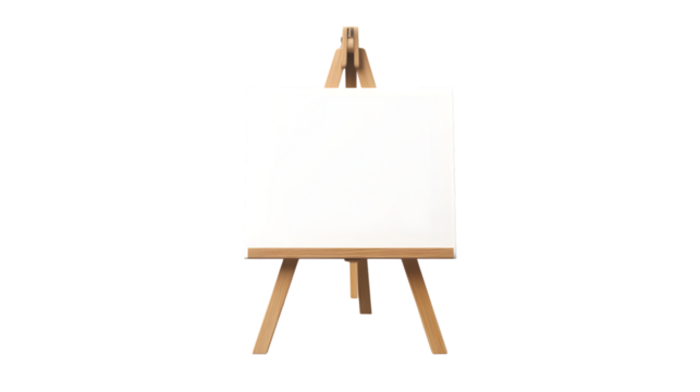 Blank canvas on easel isolated on transparent background