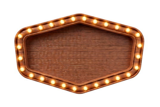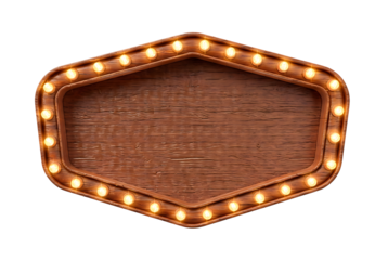Vintage wooden marquee sign with glowing light bulbs, perfect for retro designs isolated on transparent background