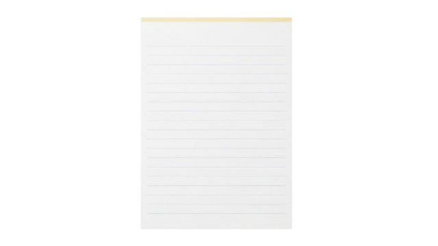 Lined notepad paper PNG isolated on transparent background, blank sheet for notes and reminders, stationery design element