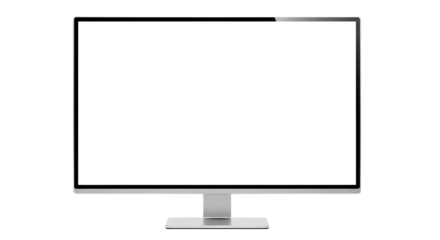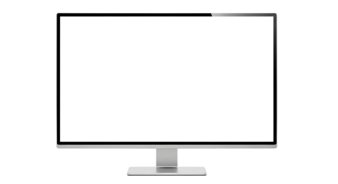A modern, slim computer monitor with a blank white screen, isolated on a transparent background, ready for content