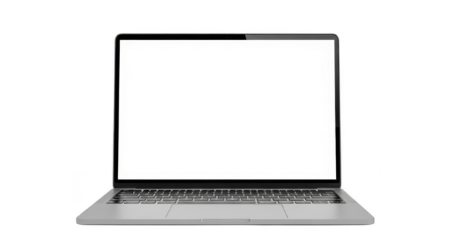 Isolated sleek laptop device features a blank screen for visual content integration.