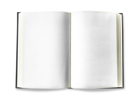 Open book PNG isolated on transparent background, blank pages of old book for writing or drawing, vintage style book with empty sheets