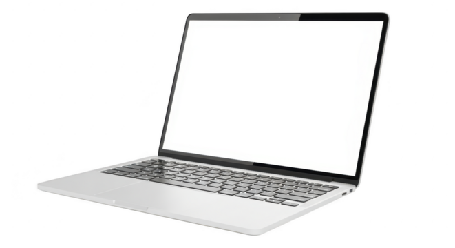 Modern silver laptop with blank screen for ad and design mockups