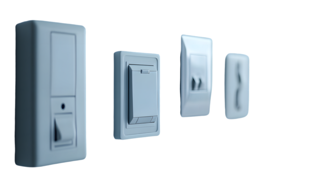 Variety of Decorative Light Switches and Electrical Outlets Displayed, isolated on transparent background