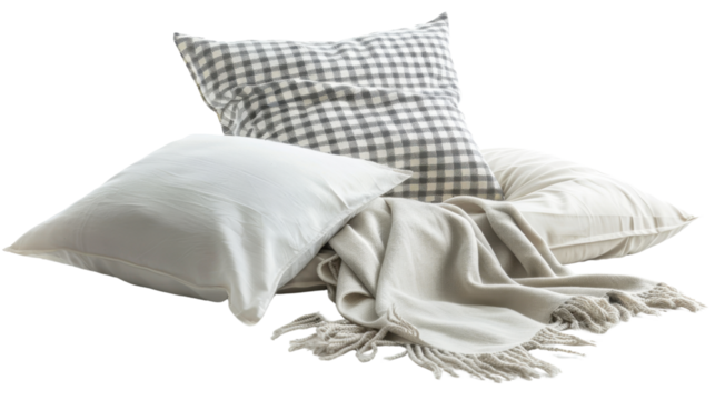 hanging wrapped warm woolen checkered plaid blanket, png file of isolated cutout object with shadow on transparent background.