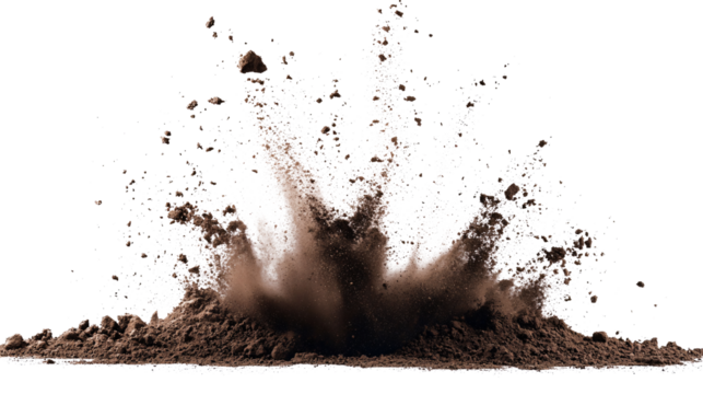 Explosive dark gray smoke plume spreading, creating a dynamic blast effect with a transparent background