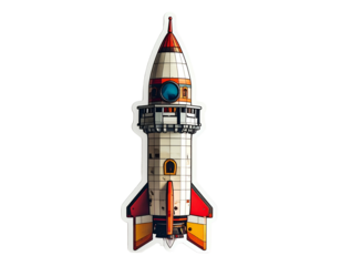 Cartoon rocket with unique design, ready for blast off