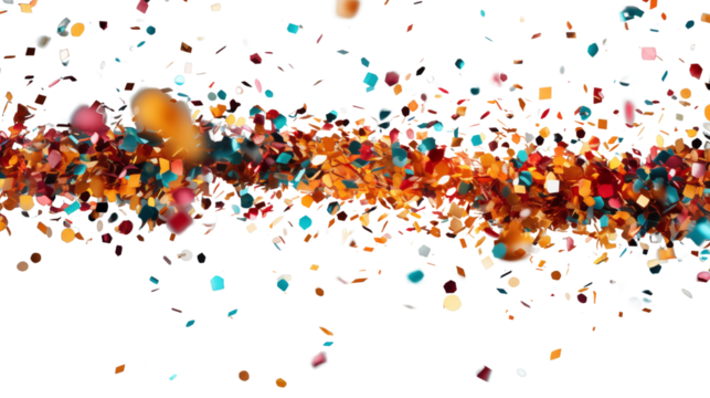 Festive background with falling golden confetti and shiny serpentine streamers for a party or celebration
