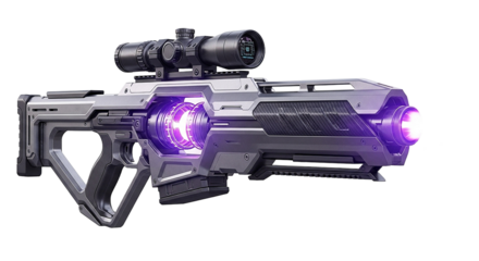 Futuristic plasma rifle sci-fi energy weapon on transparent background