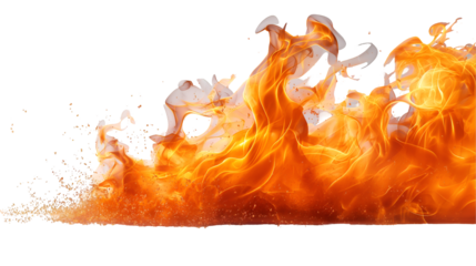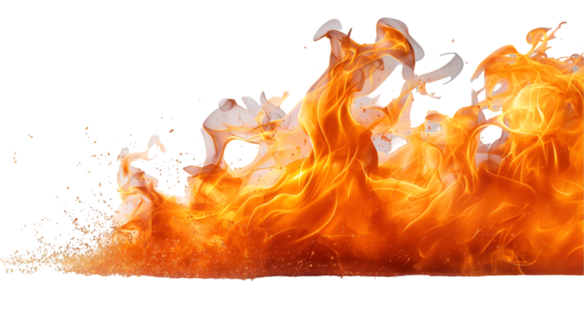 Fiery Orange Flames Abstract Texture, Hot Burning Background for Dramatic Themes, isolated on transparent background.