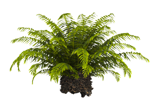 Botanical set featuring Polystichum Setiferum and Matteuccia struthiopteris with vibrant green foliage, Transparent background, PNG file