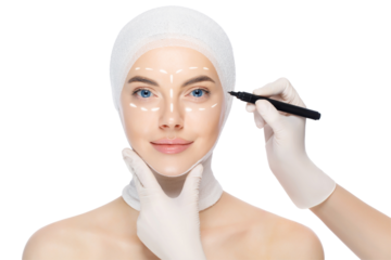 Medical professional marks woman's face for cosmetic surgery procedure beauty surgeon isolate marking transparent background