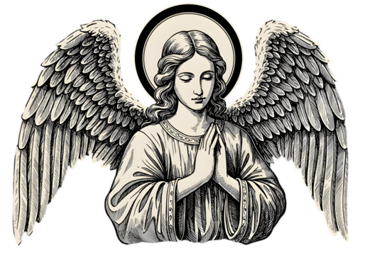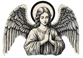 Illustration of Angel with Wings and Halo in Prayer Pose on Transparent Background