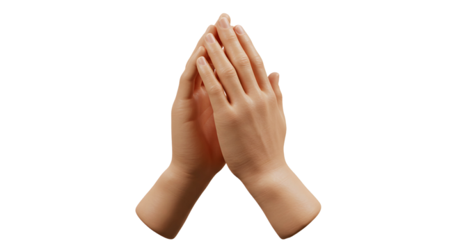 Praying hands, detailed 3D render, isolated on white background, symbolic of hope and religion, realistic textures.