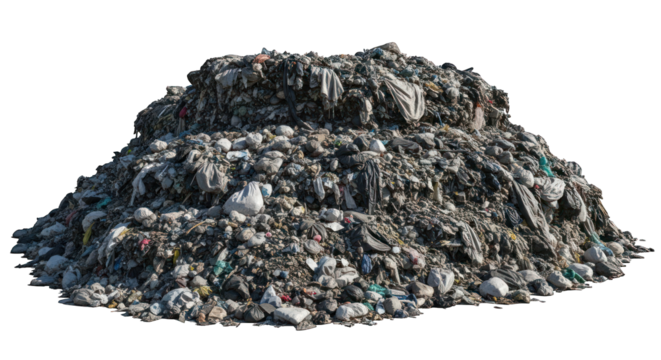 Detailed close-up of a large, diverse pile of trash, rubbish, and discarded waste materials