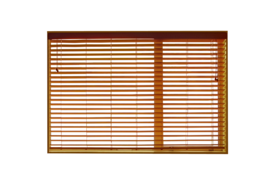 Cutout of an isolated modern window with a blind under evening sunlight taken from inside with the transparent png