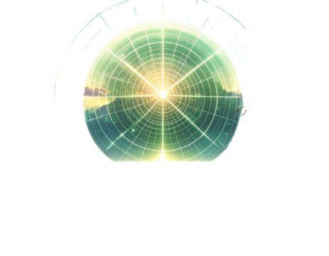 Green Radar Screen with Circular Grid and Blip Dots, Classic Military Style, Isolated