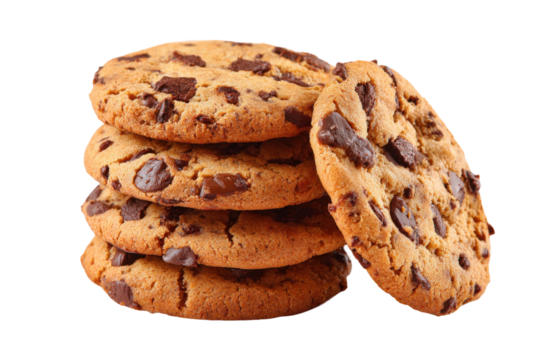 Home kitchen bliss close-up of delicious chocolate chip cookies. Isolated on transparent background, png.