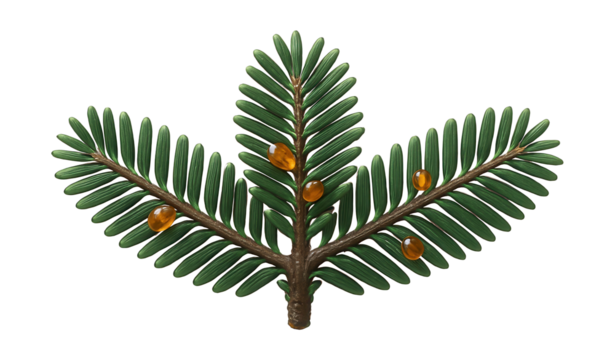 Balsam fir branch with symmetrical needle arrangement and resinous blisters