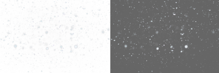 Falling snow overlay with a transparent background. Realistic winter blizzard effect, white snowflakes texture for photo and video editing. Abstract weather pattern, isolated graphic element.