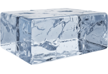 Large rectangular ice block with frosty texture on a transparent background, ideal for beverages or cool effects, isolated PNG image, PNG file