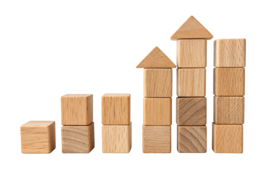 Wooden blocks forming an upward trend graph isolated on transparent background