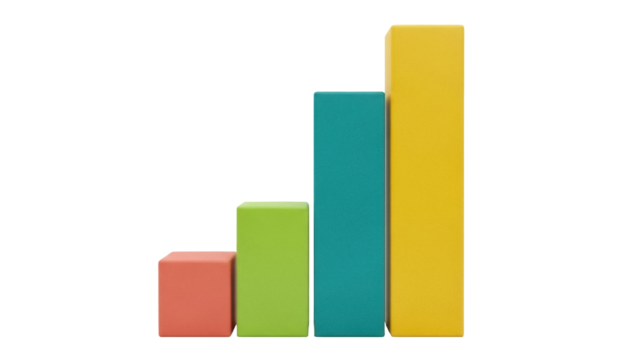 Ascending colorful 3D bar graph showcasing growth and progress. background removed