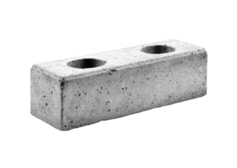 Gray rectangular concrete block with two holes, seen in a simple still life